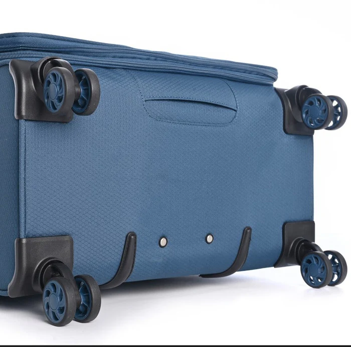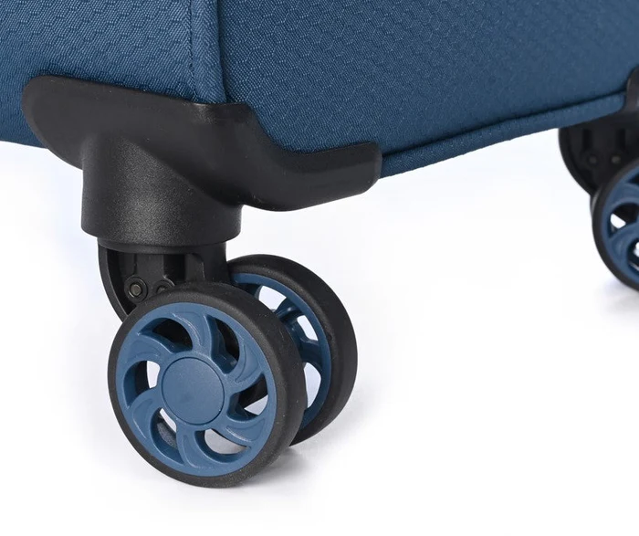 מזוודה 4 גלגלים דגם C-lite מעוצבת וקלה במיוחד חזקה עשויה פוליאסטר בצפיפות גבוהה ועמידות בפני תנאי מזג אויר וחדירת נוזלים, 4 גלגלי סיליקון 360 ספינר כפולים שקטים ובולמי זעזועים לנסיעה חלקה