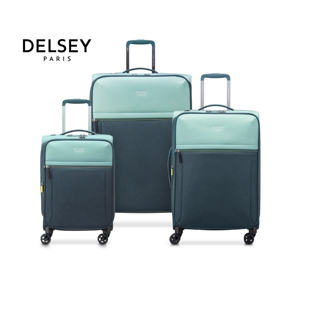 סט שלישיית מזוודת קלת משקל של חברת Delsey דלסיי הצרפתית מדגם Brochant 3.0