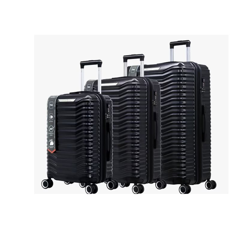 מזוודות קלות משקל בעלות 4 גלגלים כפולים התואמים צבע לנסיעה בטוחה וחלקה.