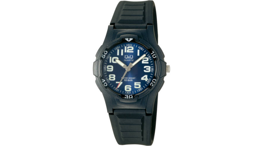 שעון יד מהודר מבית המותג Q&Q עם מספרים ברורים ולוח נקי השעון מחוגי השעון ברורים וזוהרים בחושך
