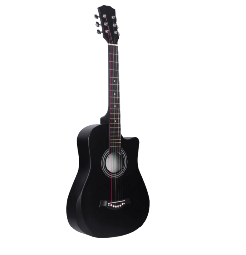 גיטרה אקוסטית Cutaway בצבע שחור בגימור מט בעלת צליל עשיר ונעים, צוואר דק ונח במיוחד
